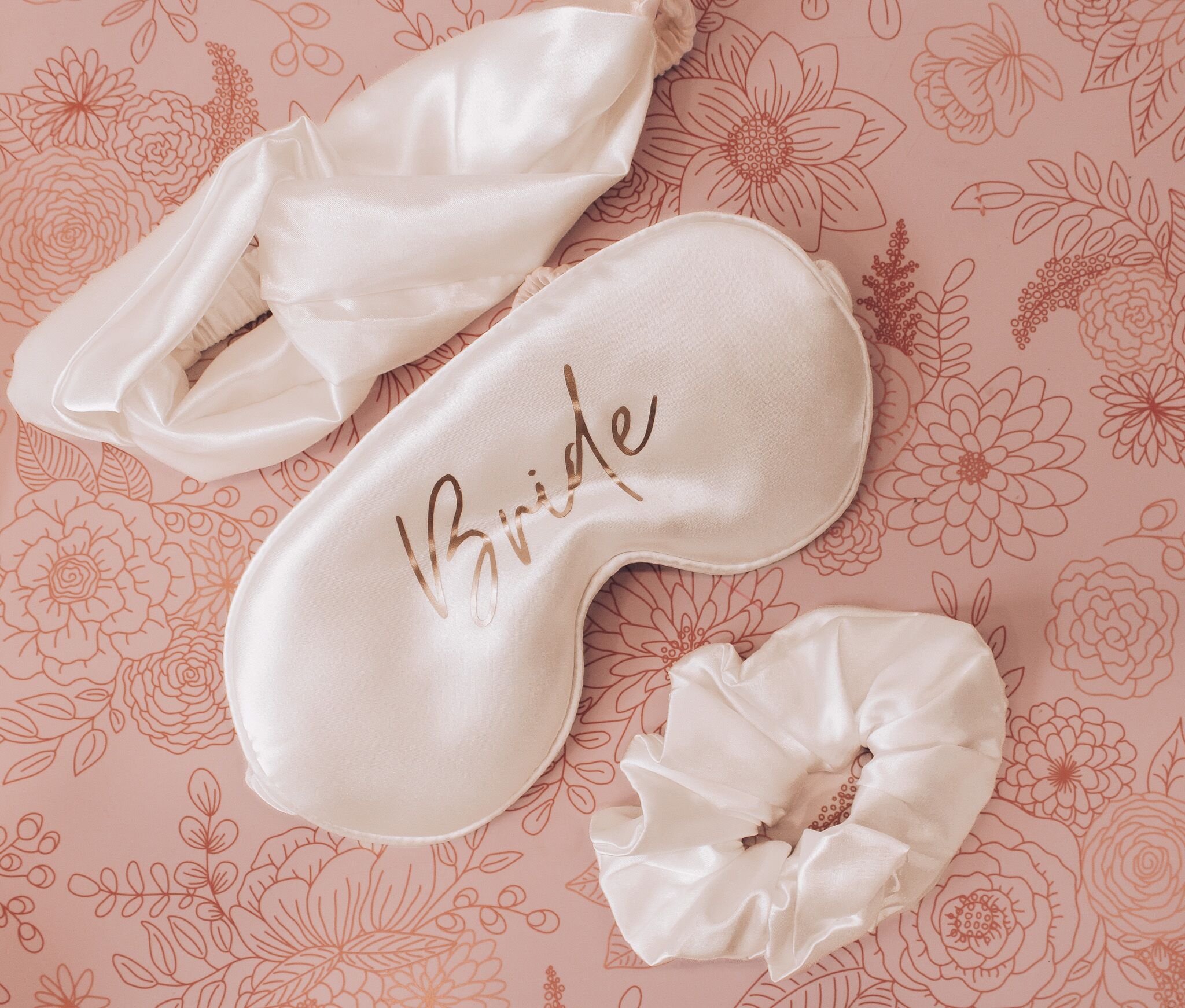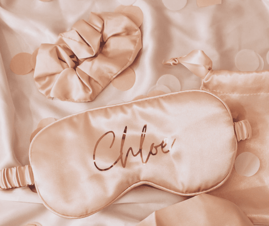 Satin sleep set (includes eye mask and scrunchie) in your chosen colour (white, pink or black)