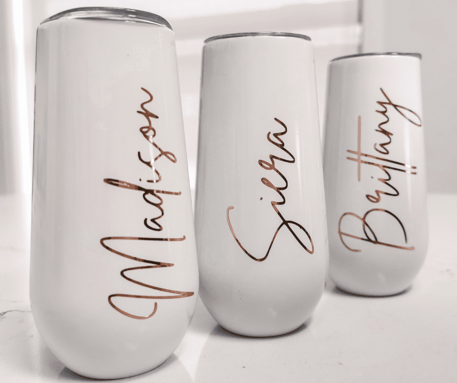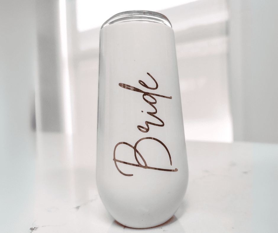 Pink, White or Black Wine Tumbler with custom rose gold decal (name or bridal party role)