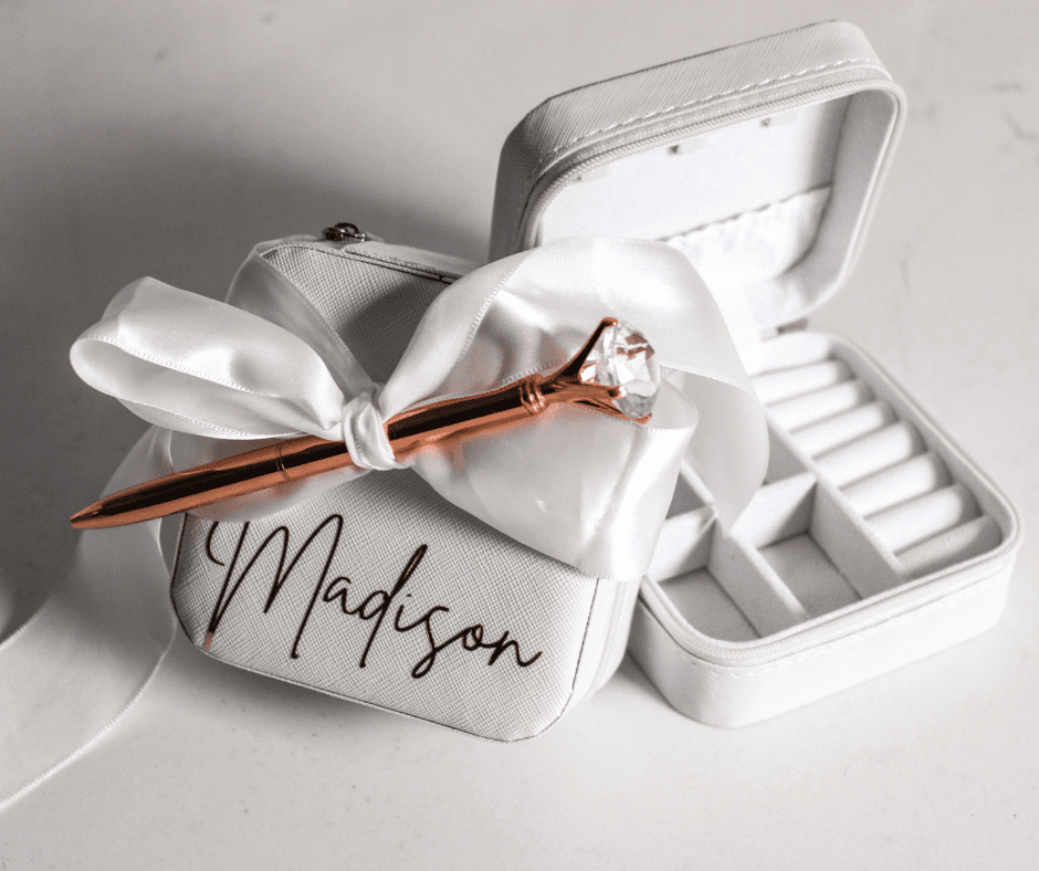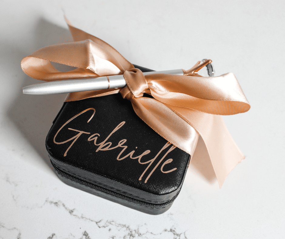 Personalised Jewellery Box in pink, white or black with customised with rose gold decal